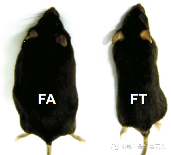 图6,随时组(FA)和限时组(FT)的老鼠身材对比。