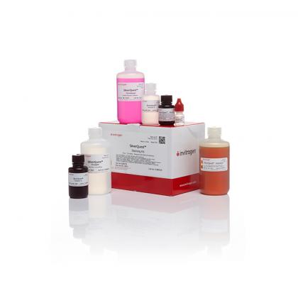 The SilverQuest™ Silver Staining Kit provides a rapid and easy method to silver stain proteins and DNA in polyacrylamide gels. Silver staining allows detection of most proteins since it is 30-fold more sensitive than staining with colloidal Coomassie™ G-250. The SilverQuest™ Silver Staining Kit is specifically designed to provide sensitive silver staining compatible with mass spectrometry analysis.