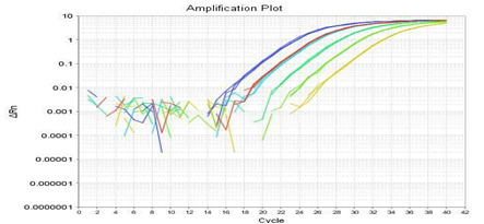 对数图. 以1ng人的总RNA为模板,5倍系列稀释,BIOGHC Elitefast Probe