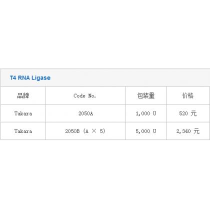 T4 RNA Ligase 品牌 Code No. 包装量 价格 说明书 Takara 2050A 1,000 U 520 元 Takara 2050B (A × 5) 5,000 U 2,340 元