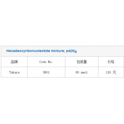 Hexadeoxyribonucleotide mixture; pd(N)6 品牌 Code No. 包装量 价格 说明书 Takara 3801 80 nmol 120 元