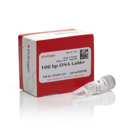 Product usage: The Invitrogen 100 bp ladder was used to with agarose gel electrophoresis in a 1.25% agarose gel and was visualized with ethidium bromide staining.