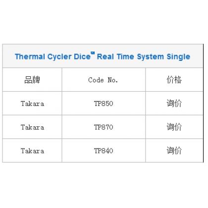 Thermal Cycler Dice™ Real Time System Single 品牌 Code No. 价格 Takara TP850 询价 Takara TP870 询价 Takara TP840 询价