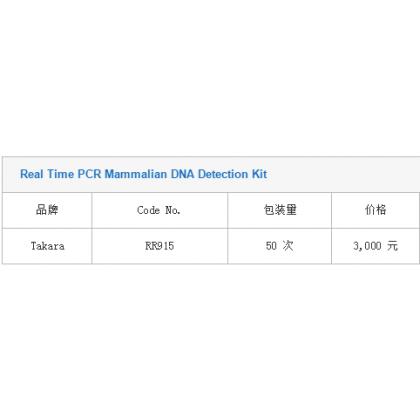Real Time PCR Mammalian DNA Detection Kit 品牌 Code No. 包装量 价格 说明书 Takara RR915 50 次 3,000 元