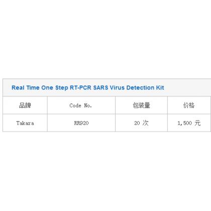 Real Time One Step RT-PCR SARS Virus Detection Kit 品牌 Code No. 包装量 价格 说明书 Takara RR920 20 次 1,500 元