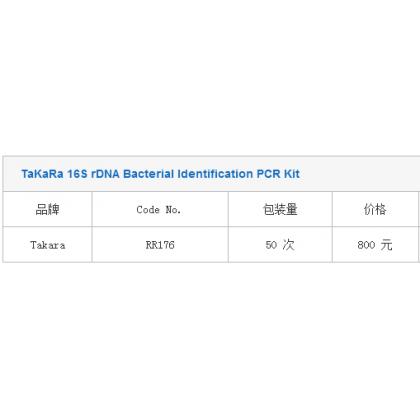 TaKaRa 16S rDNA Bacterial Identification PCR Kit 品牌 Code No. 包装量 价格 说明书 Takara RR176 50 次 800 元