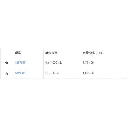 Purity or Quality Grade: DNase-Free, Molecular Biology Grade, RNase-Free Sample Treatment: DEPC-Treated Format: Bottle(s) Product Size: 1 x 500 mL Purification: Membrane-Filtered, Autoclaved Shipping Condition: Room Temperature